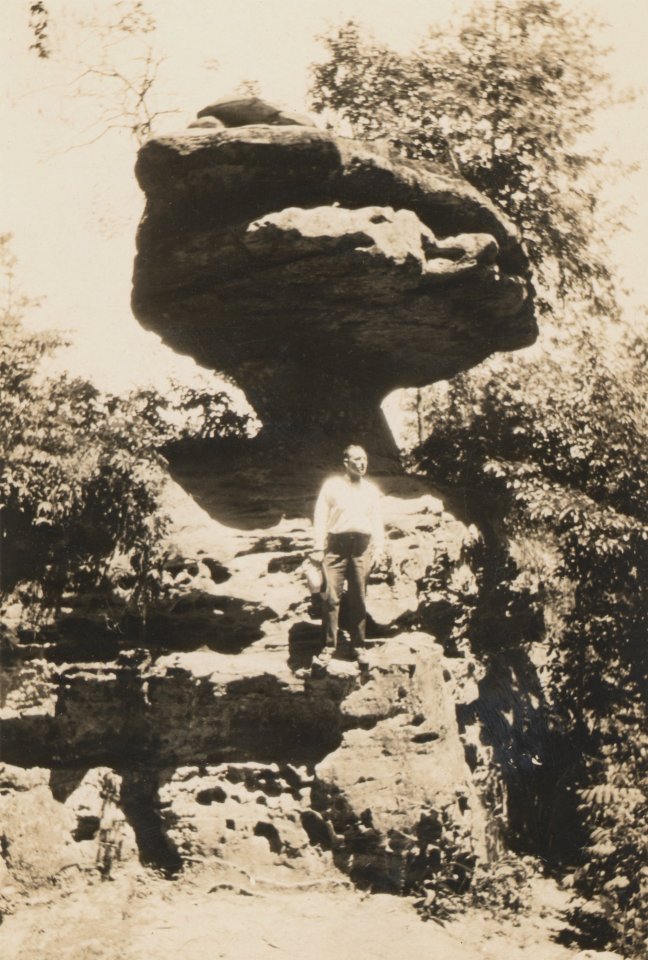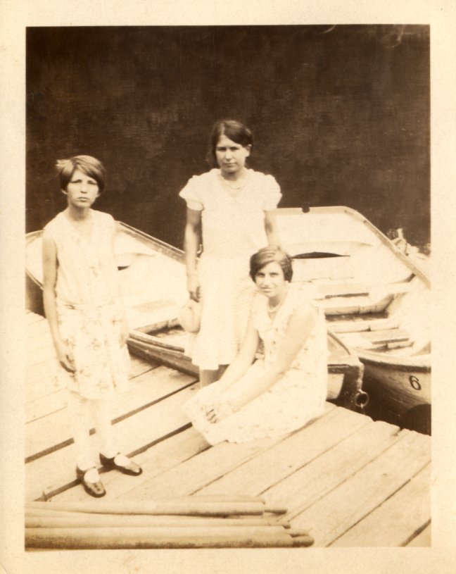 The pictures above were apparently taken by Myrtle Wills Martin (or with her camera), circa 1930. She is the middle lady in the picture of the ladies on the dock. The gentleman standing on the side of Balanced Rock is her brother, Emmett Wills. People in the other photos are presently unknown.